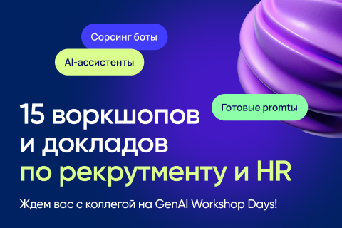 | Делимся промокодом на GenAI Workshop Days! | | | | Приглашаем вас на практическую конференцию, GenAI в рекрутменте и HR 26−27 ноября, которая пройдет в Москве, с возможностью онлайн-участия. | | | | Это не очередная «теоретическая» конференция — здесь вы увидите реальные кейсы внедрения генеративного ИИ в процессы подбора, HR-аналитики, сорсинга, адаптации и обучения.
